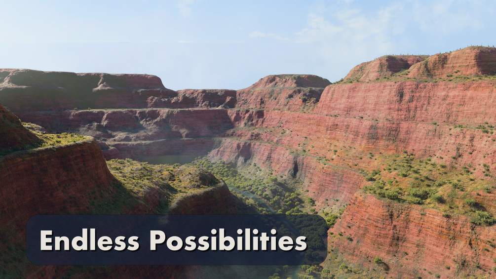 World Generator leverages the power of Geometry Nodes, providing you with the incredible capability to make real-time modifications to your landscapes.